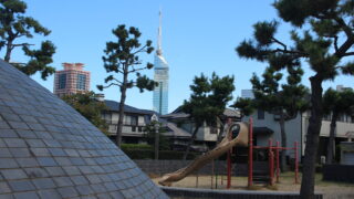 百道浜東公園はどんなところ?ブランコは?すべり台は?遊具は?公園の設備や環境、遊具画像、出入り口についてご紹介します。他にもこれまで訪れた福岡市内の公園も紹介しています。