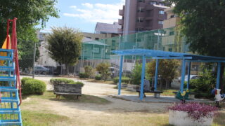 福岡市早良区公園 うんていがある複合遊具*明るい公園*娘が小さい頃何度か公園そばに来ていた記憶*熱性けいれんの話「百道浜東公園」早良区百道浜1丁目
