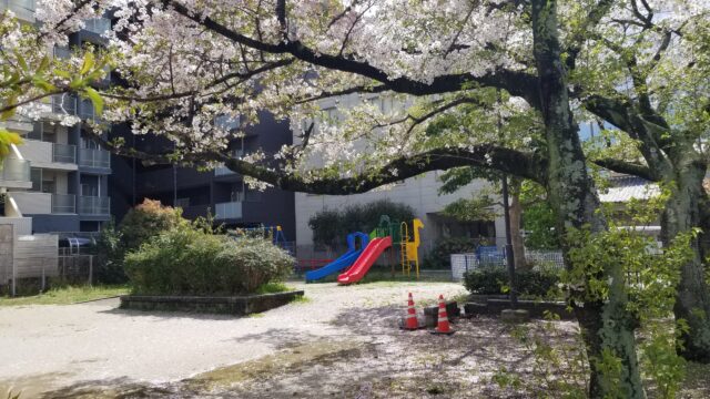 吉塚しょうえん公園はどんなところ?ブランコは?すべり台は?遊具は?公園の設備や環境、遊具画像、出入り口についてご紹介します。他にもこれまで訪れた福岡市内の公園も紹介しています