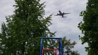 福岡市東区公園 突然の雹でみんな大興奮(笑)*整備されたコンパクトな公園*飛行機が見える「箱崎1号公園」東区箱崎2丁目