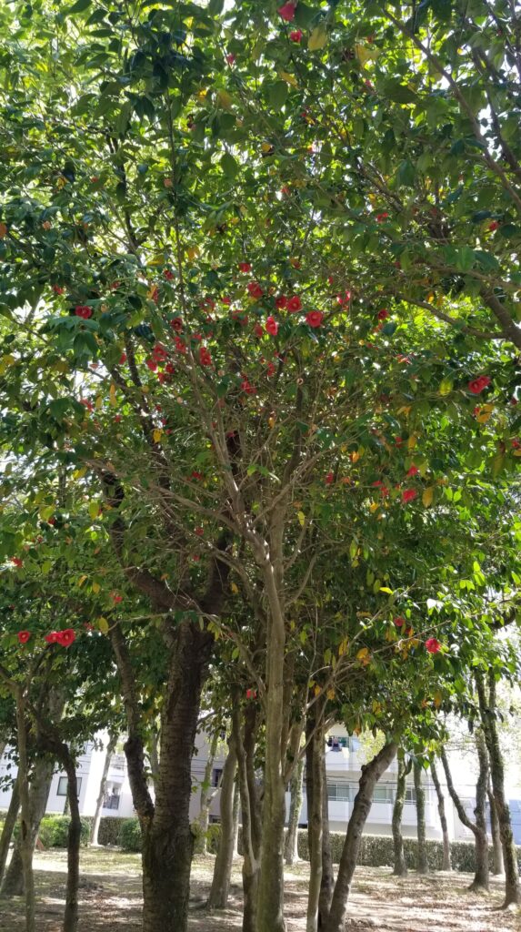 こちらの公園は1週760メートルのランニングコースがあります。朝も昼も夜も走っている方が多いです。緑も多く花もキレイですごく気持ちよいコースです。木漏れ日が本当キレイです。