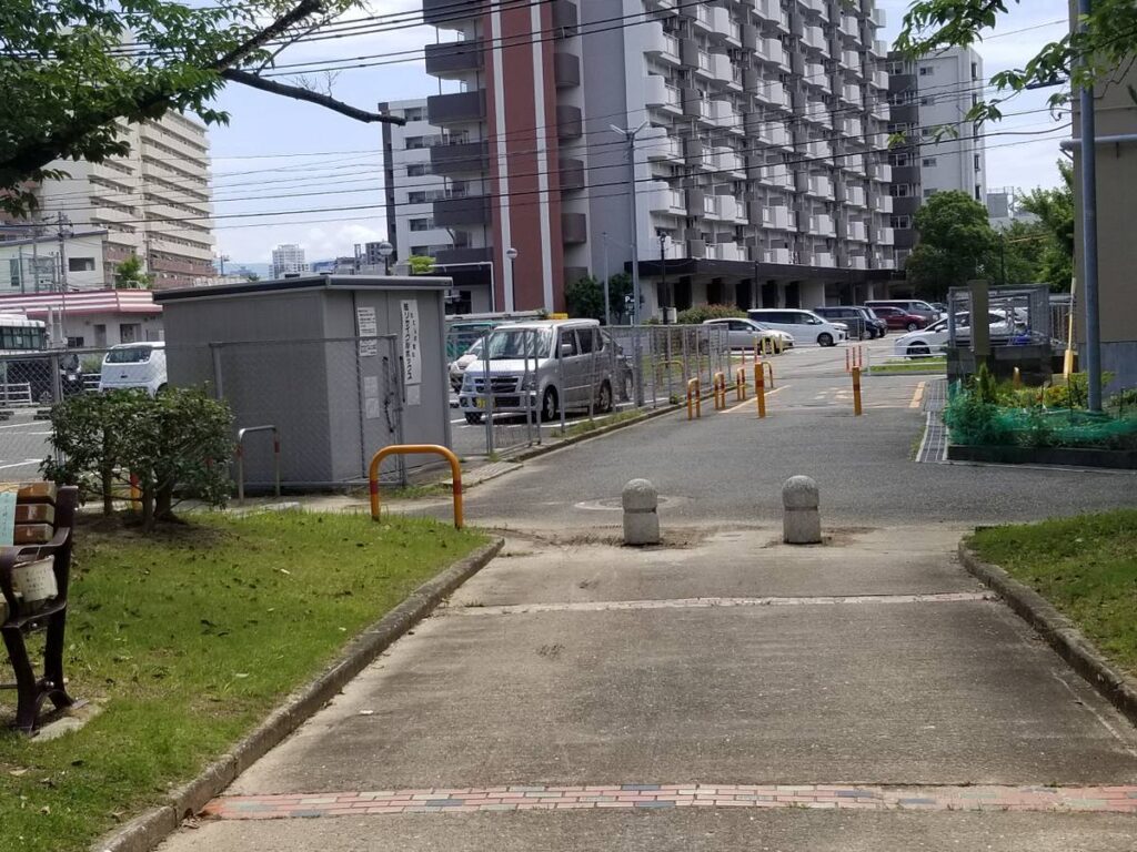 公園出入り口(ベビーカーや子乗せ自転車は入りやすいのか?車止めは?)