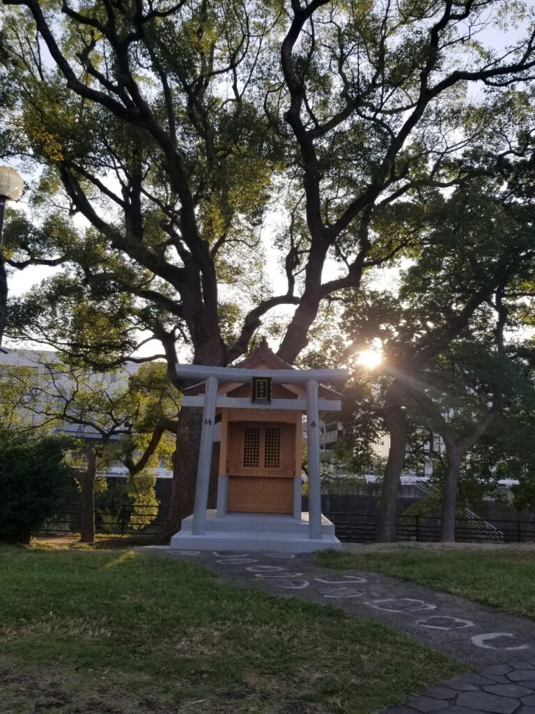 個人的にとてもパワーを感じる場所です。社周りにある木々からもエネルギーを感じます。そしてこの緑地、目をひくのは遠くから見た時の暗渠ですね。中がどうなっているのか、どんな雰囲気なのか気になります。どうにか覗けないのかな、川の水が引いた時に見れたりするのかな。とっても気になります。