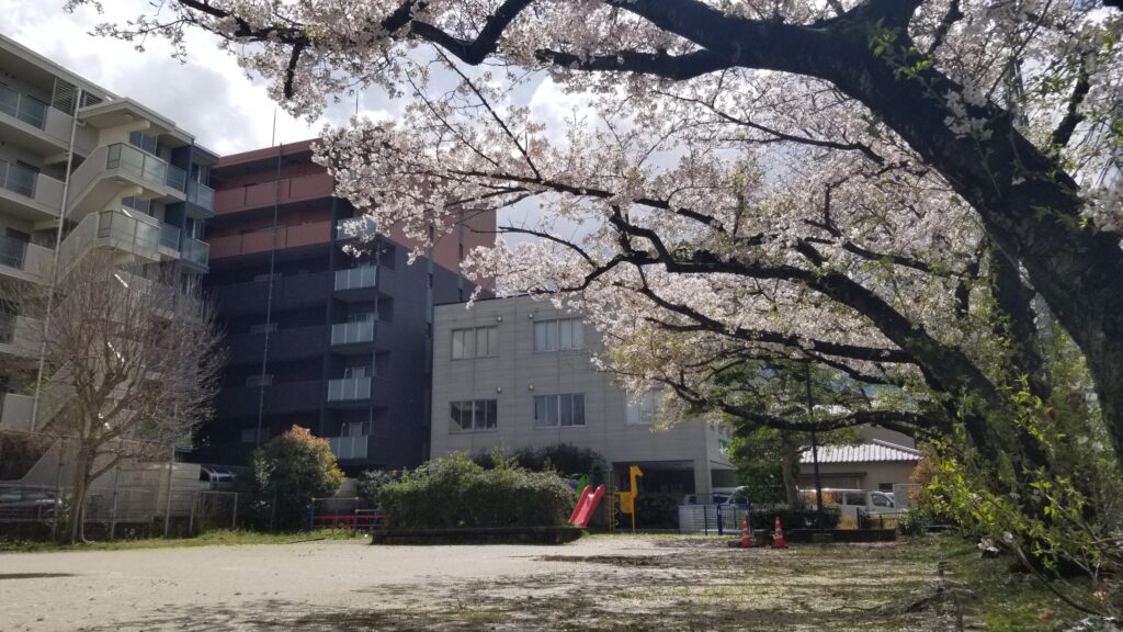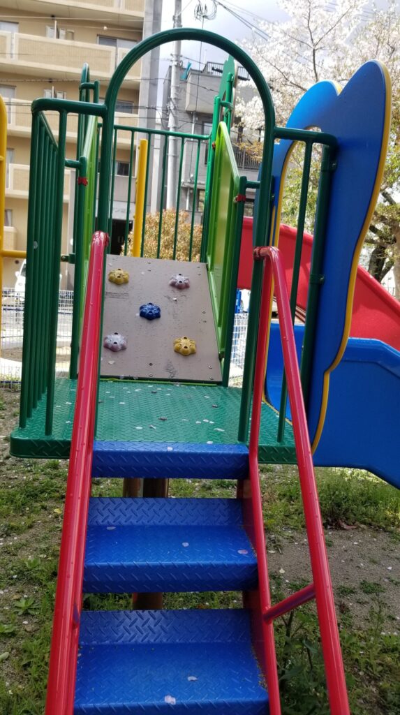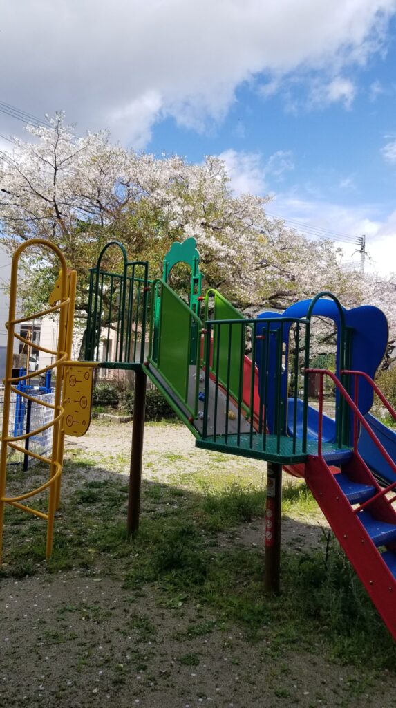コチラの公園は、遊具がリニューアルされていて、カラフルで以前より明るい印象になりました。桜もとてもきれいです。